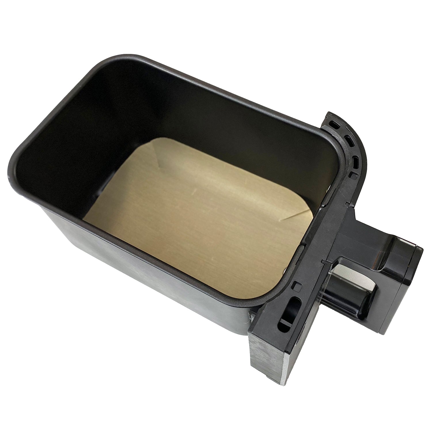 Place the base liner on the bottom of the basket to catch drips, keeping the basket clean. Place the perforated liner on top of the trivet, the holes in the liner allow air to circulate around your food meaning you get a desired all round cooked result.