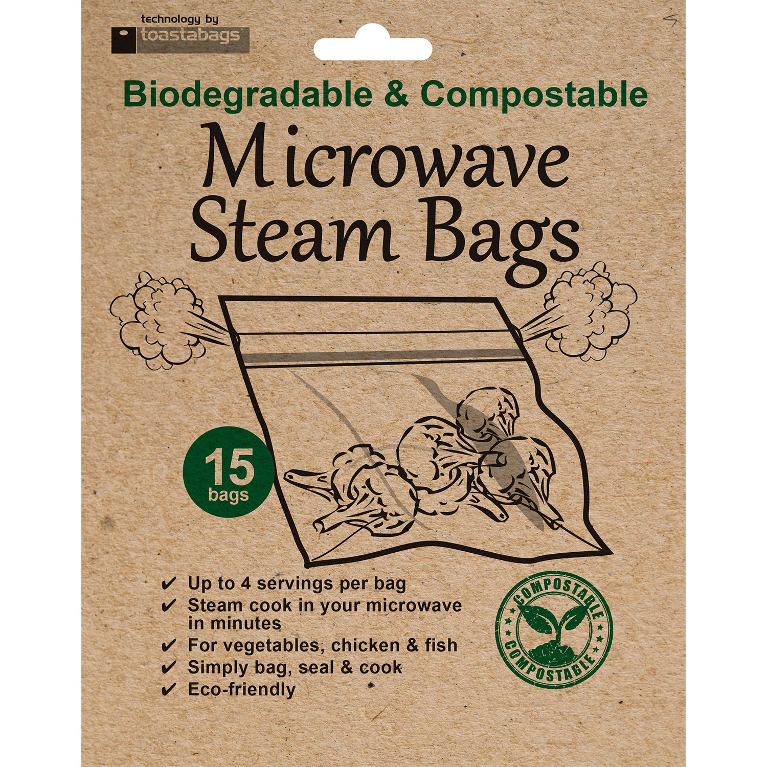 Microwave steam bags are perfect for fresh and frozen vegetables, chicken and fish, sealing in natural goodness and taste as part of a healthy diet. Microwaving is a quicker and healthier way to cook your vegetables. Cooks in minutes whilst retaining all the flavour.