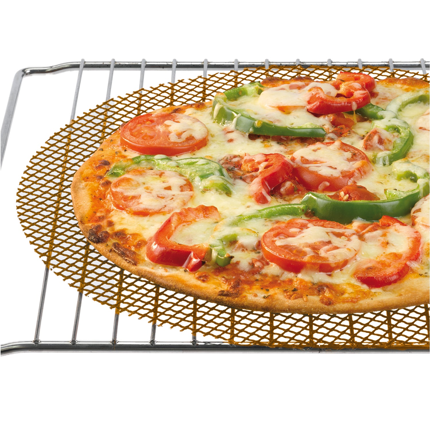 Pizzamesh sits directly on the oven shelf. The mesh design allows air to circulate for all round even cooking - no more soggy bottoms!
